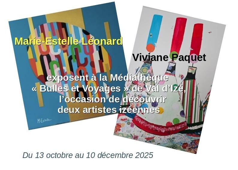 Deux artistes peintres izéennes exposent à la médiathèque « Bulles et Voyages » du 13 octobre au 10 décembre 2025 aux horaires d’ouverture :
