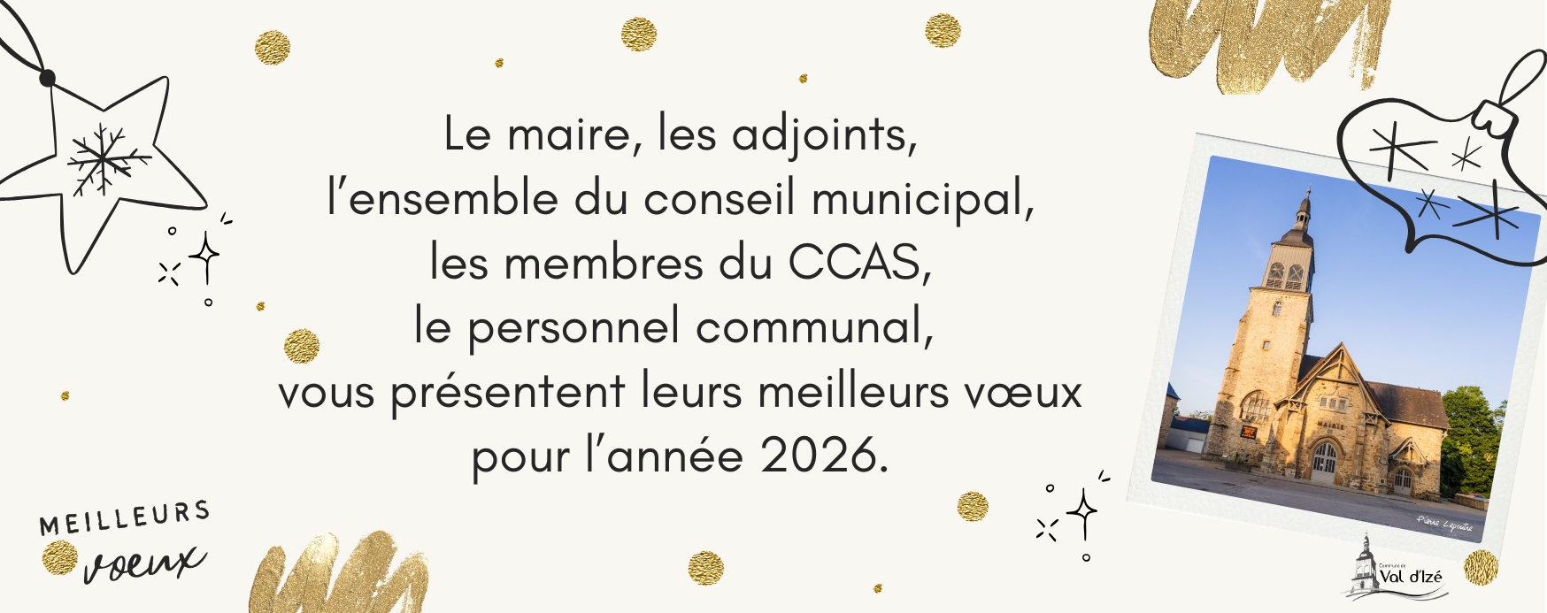 Le maire, les adjoints, l’ensemble du conseil municipal, les membres du CCAS, le personnel communal, vous présentent leurs meilleurs vœux pour l’année 2026.
