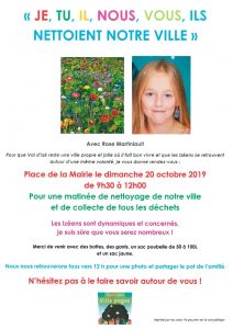 « JE, TU, IL, NOUS, VOUS, ILS NETTOIENT NOTRE VILLE » Dimanche 20 octobre 2019 de 09h30 à 12h00