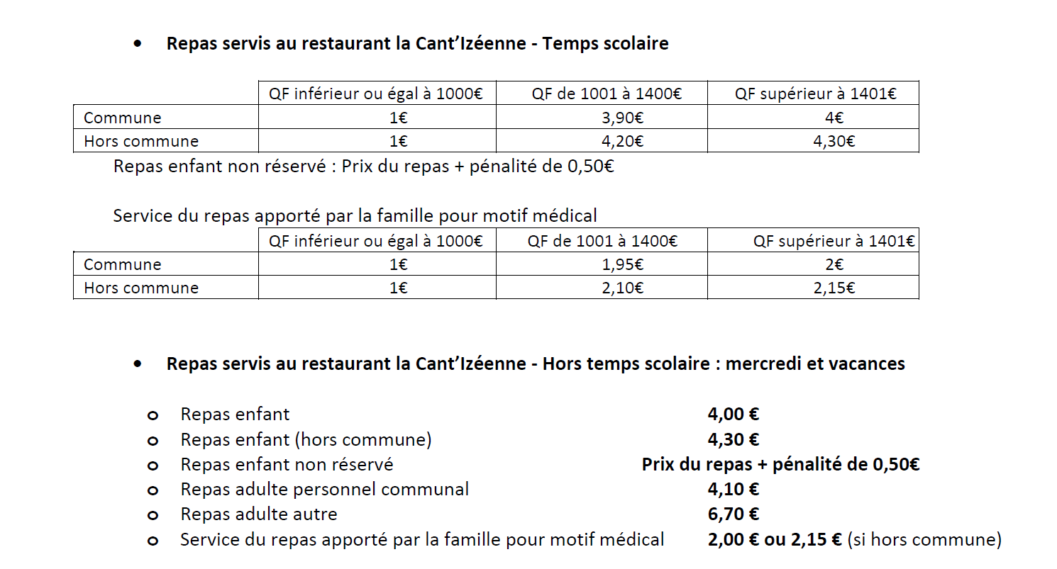 RESTAURANT SCOLAIRE « LA CANT’IZÉENNE »